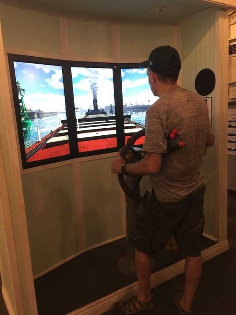 Ari trying to dock the freighter without crashing – harder than it looks!