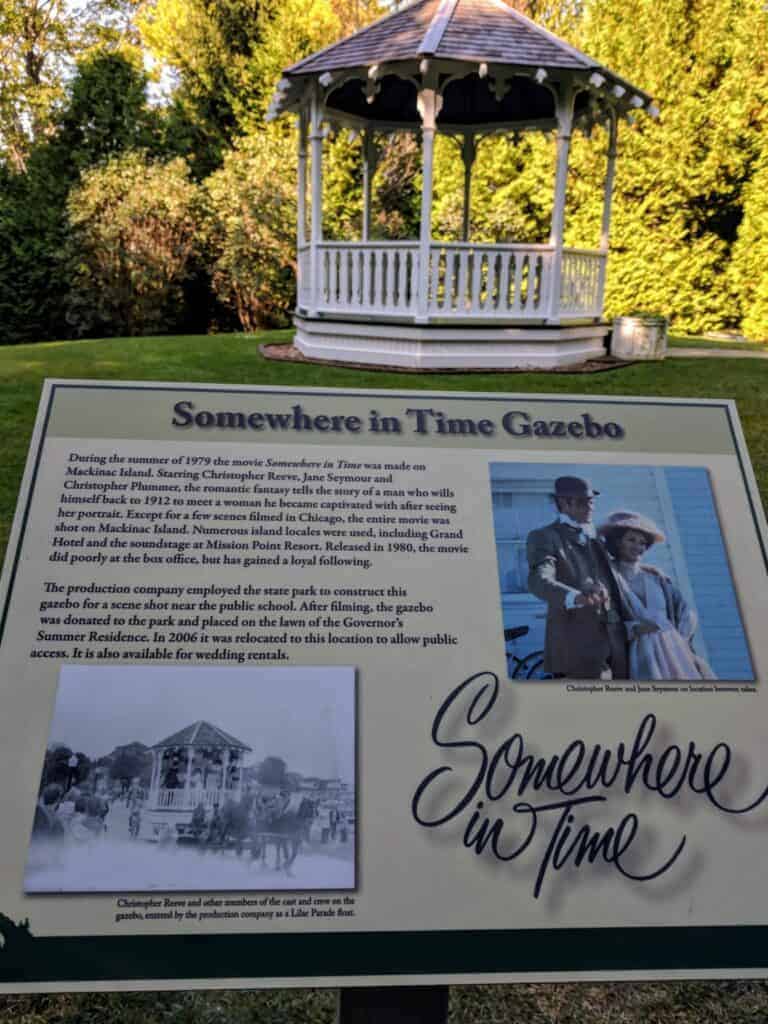Fun Hollywood fact: most of the movie Somewhere in Time was filmed on Mackinac Island, and they still have the gazebo there.