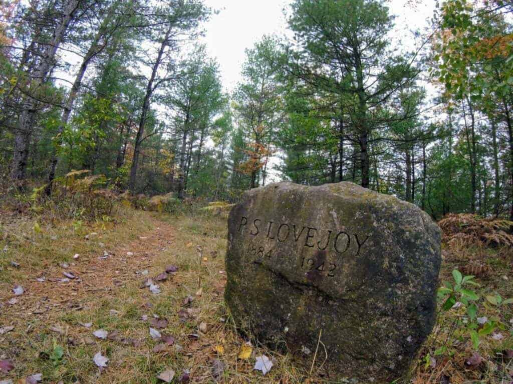 We owe much thanks to P.S. Lovejoy, a guy with an eye for the future who worked hard to make sure the Pigeon River Country remained untouched and available to be preserved as state land. This is a memorial marker near the local DNR headquarters.