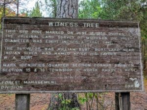 We also found the Witness Tree, which is a red pine used as part of the original surveying for the state of Michigan back in 1850. You can learn about that from my short narration here